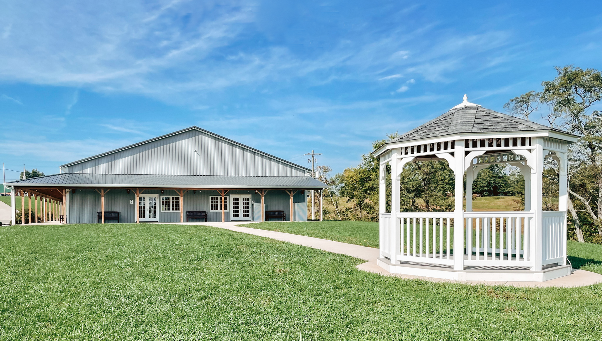 Host gorgeous outdoor ceremonies in the soft grass blanketing Belle Hills and say your vows under the 10’ Amish-built gazebo.